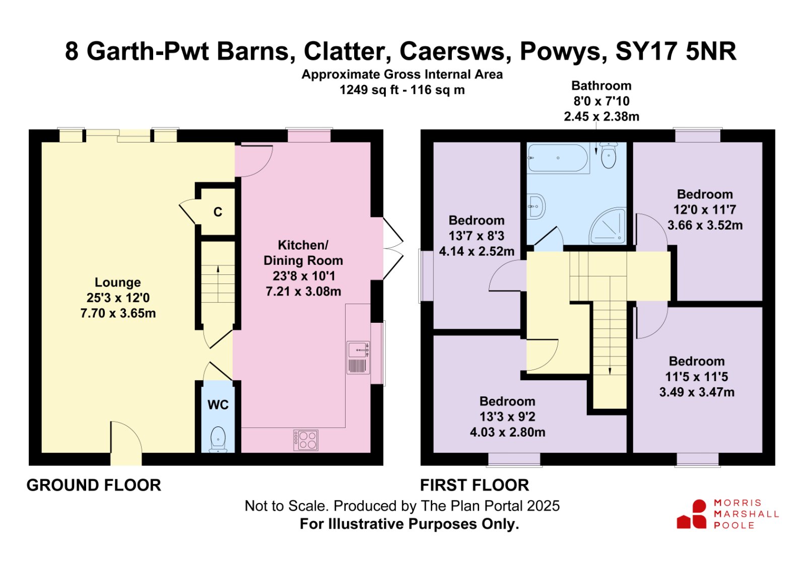 Barn 8 is a Mid Terrace Dwelling House over two storeys with extensive garden to the side and rear situated in a rural location adjacent to the main farmhouse within a complex of 9 units.The villages of Trefeglwys 2.5 miles, Clatter 1 mile, Caersws 3.5 miles and the towns of Newtown 6 miles and Llanidloes 7 miles.The accommodation is well appointed with oil fired central heating, double glazing, newly fitted carpets and laminate flooring with quality fixtures and fittings.Accommodation comprises:Ground Floor:Living Room front entrance door, French doors to rear gardens, staircase to first floor.Inner Lobby with cloaks cupboard.Cloakroom with WC.Kitchen/Dining Room comprising extensive modern fitted units with built-in oven and hob with extractor over, dishwasher.First Floor:4 BedroomsFamily Bathroom with shower cubicleCommunal front parking. Extensive enclosed rear garden with paved patio enjoying countryside views.