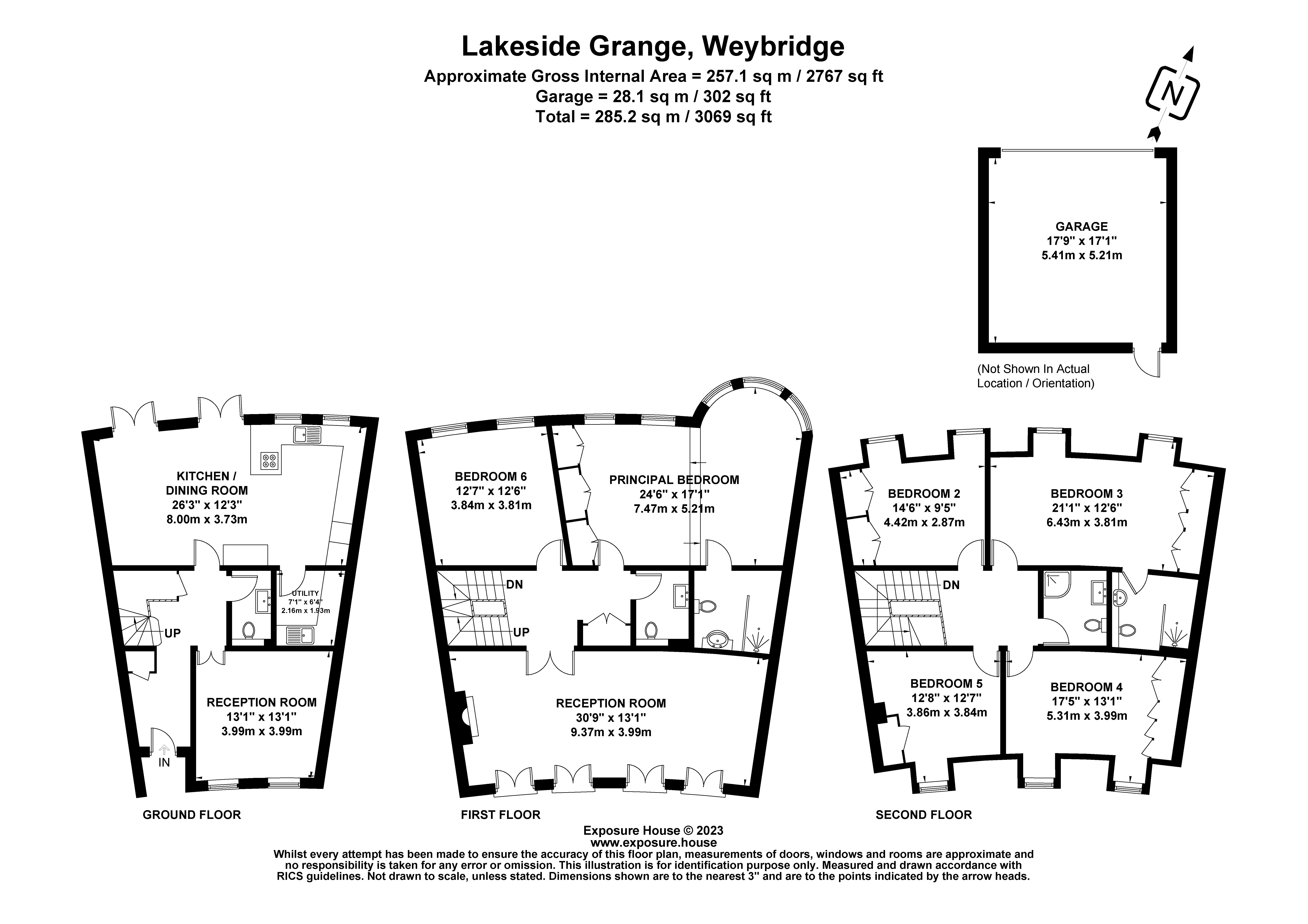 Exceptionally well presented 5/6 bedroom townhouse situated on a sought after development in beautiful parkland, one mile from Weybridge High street.DescriptionInspired by the Bath Royal Crescent, a truly celestial gated development of classically-styled townhouses set in beautiful parkland.The kitchen/dining room, candidly is the heart of this beautiful family home. Upon entering the property, an elegant and spacious hallway guides you to the neutral décor kitchen, which benefits from underfloor heating, Siemens integrated appliances and French doors that lead to the secluded rear garden and subsequent double garage. A utility room, tucked away off the kitchen, provides a discreet workspace for laundry with Bosch appliances. There is an abundance of entertaining space throughout this home with a south East facing reception room to the front of the house on the ground floor overlooking the landscaped communal gardens. A cloakroom, store room and WC complete the ground floor accommodation.On the first floor, a large formal reception room with four sets of French doors open onto a Juliette balcony which spans the width of the room. High ceilings and generous windows flood the space with light, creating a sense of elegance and grandeur. Also on this floor lies the principal suite with ample storage and dressing area, a seated bay window and a modern ensuite bathroom with a double shower. There is a further double bedroom with built in storage and WC.The second floor comprises a lavish guest suite, with built-in storage and ensuite bathroom. There are two further double bedrooms, both with built-in storage and views over the grounds, a single bedroom and family bathroom which completes the internal accommodation.Externally, there is a double garage which leads to the private rear garden, which is mostly laid to lawn, with an outdoor seating area and mature trees, providing complete screening from neighbouring properties. There is also a bank of communal parking spaces available for use by residents and guests.LocationWeybridge lies to the northwest of Surrey on the south bank of the River Thames, at the mouth of the River Wey. It is an attractive commuter town offering a full range or properties.The town centre has a range of both high street chains and individual boutiques, including a Waitrose supermarket, plus a good mix of bars and restaurants.Transport links are excellent. Weybridge mainline station has a regular service to London Waterloo in 29 minutes and the M25 (J10) is 3 miles away giving access to the motorway network and Gatwick and Heathrow International airports. Central London is 21 miles and accessed via the A3 (2.5 miles).The local area is served by an excellent selection of highly regarded state and private schools for all age ranges. There is also a huge choice of leisure facilities including numerous golf courses, horse riding, clay shooting, health clubs, rugby/football clubs, cricket clubs, racing at Sandown and Kempton Park and open countryside.Please note all distances and times are approximate.Square Footage: 3,069 sq ftAdditional InfoHolding Deposit : £1,269.23 (1 week)Deposit Payable : £7,615.38 (6 weeks)Minimum Term : 12 monthsRent must be paid monthly in advance