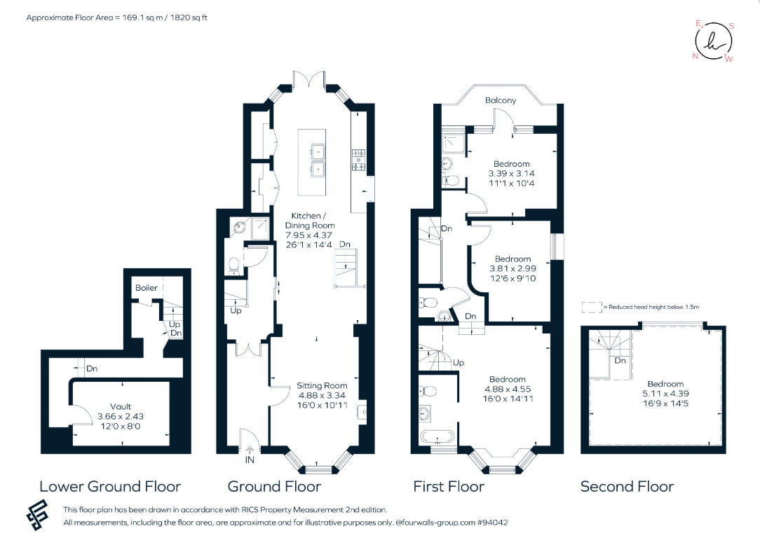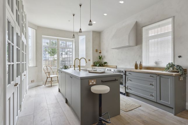 The Old Bank is a stunning home in the heart of Shoreham-by-Sea. Once a doctor’s home and later a bank, it’s now been beautifully transformed into a stylish and characterful place to live. Set on East Street, right opposite the historic St Mary de Haura Church, the home blends heritage charm with modern comfort. Arranged over four floors and extending to approximately 1,820 sq ft, the accommodation includes a stunning 26ft kitchen and dining room with micro-cement island and marble twin sinks, opening through French oak doors to a private east-facing garden. The ground floor also features a welcoming sitting room with open fireplace. Upstairs are three generous king-size bedrooms, including a luxurious principal suite with en-suite bathroom and balcony, a further wet room, study and cloakroom. The lower ground floor offers a useful cellar with wine storage and secure vault. Finished with natural tones, oak floors and wool carpets, this home also offers underfloor heating, cast-iron radiators, air source heat pump, gated parking with EV charger – all designed for modern living with character. To check broadband and mobile phone coverage please visit Ofcom here