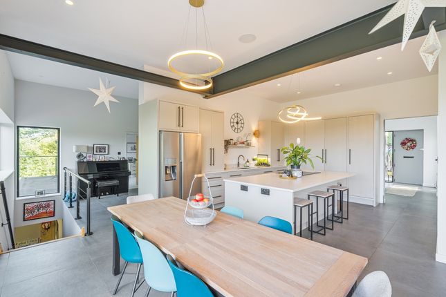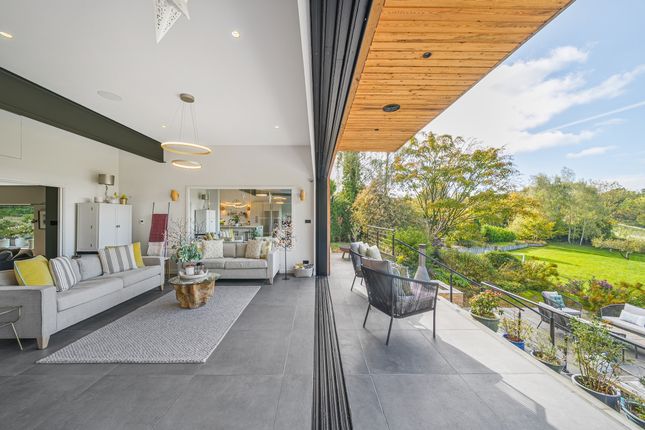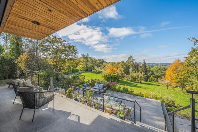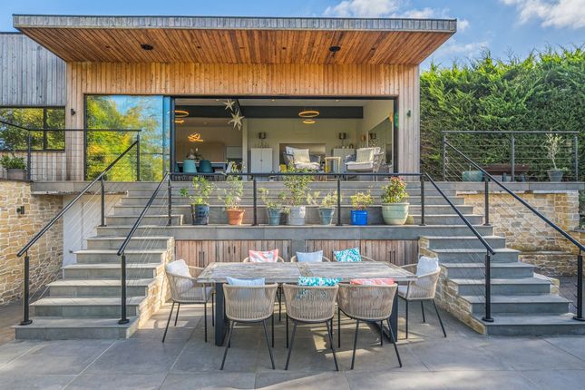 Thoughtfully designed across two levels and extending to nearly 3,000 sq ft, this property showcases striking architecture, luxurious finishes, and uninterrupted views of Freshford and Limpley Stoke.The heart of the home is the open-plan kitchen, dining and living area, featuring full-width sliding glass doors that seamlessly connect the interior to a generous raised terrace. Flooded with natural light, this space is perfect for both entertaining and relaxing, with panoramic views across the landscaped gardens and surrounding countryside. The sleek kitchen includes a large central island, integrated appliances, and plenty of storage.The property offers five spacious double bedrooms served by two bathrooms, the principal suite enjoys a calm and private position with elegant décor, built-in storage, and a luxurious bathroom complete with both a bath and walk-in shower.Additional living areas include a second sitting room with a wood-burning stove and large picture windows, ideal for cosy evenings, as well as a dedicated boot room and utility room, providing practical and stylish storage solutions. To check broadband and mobile phone coverage please visit Ofcom here