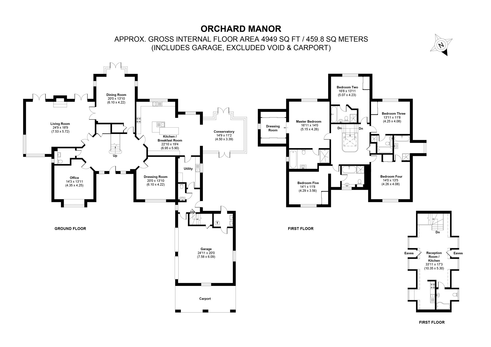Orchard Manor is a picturesque five bedroom detached home that is located in a beautiful rural location, situated less than 2 miles from the town of Ascot, and is conveniently located within an area prized for its close proximity to London with the City Centre less than 30 miles away. All communications are excellent with the A30 providing direct access to the national motorway network.Constructed in 2009 this semi-rural Berkshire home, measuring nearly 5,000 square feet, is over two floors and positioned on a superb 0.67 acre plot with a gated driveway that leads you to the property which is finished to a high specification, the design and layout of this home lends itself extremely well for practical modern living.The reception hall is spacious, and octagonal in shape, serving all the main living areas with an imposing central staircase which has a real wow factor. The two front facing rooms are similar in size, one has a gorgeous bay window and typically serves as a study which is perfect for somebody who wishes to work from home, the other is designed as a family room with a gas fireplace and is the perfect place to unwind and relax. The drawing room measures over 400 square feet with a fireplace, two sets of double doors out to the garden and a feature bay window. The inter-connecting dining room has expansive views across the rear garden and finally there is a smart guest toilet.The kitchen is of a modern design with a central island, which has a gas hob, integrated Bosch appliances, including double ovens and warming drawers, dishwasher and fridge/freezer. Immediately off the kitchen is a bright orangery for either relaxed seating or possibly a table and chairs. Via the utility room, there is internal access to the double garage and a single side door to the garden. A second staircase leads upstairs where a sizeable, studio annexe with a kitchen and bathroom spans the entire width of the double garage and the single car port.The house has five well-proportioned double bedrooms, all with fitted wardrobes with sliding mirror doors. Each bedroom benefits from an en-suite bathroom, each containing a bathtub and separate shower. The principal bedroom also has a dedicated dressing room and the generous upstairs landing is extremely bright owing to a well-placed large skylight directly above.The entire plot measures circa 0.7 of an acre with the house being framed in the centre, with mature trees and large bushes affording good privacy from any neighbouring houses. The garden is laid mostly to lawn with a patio running along the rear which is perfect for alfresco dining. The rear garden is south westerly facing, capturing the best light from the majority of the day’s sun.To the front there is a wide block paved driveway, providing ample parking for a number of vehicles, accessed by electric double wooden gates from the lane and flanked by tall, traditionally styled lamp posts. Attached to the house is a double garage with up and over doors and a covered, single car port.The nearby Ascot and Martins Heron stations also provide a regular British train service to Waterloo (approximately 50 minutes) and Reading (approximately 30 minutes). Ascot has an extremely broad appeal, with excellent local amenities, from the stylish boutiques, bijou cafés and mouthwatering delicatessens in the neighbouring villages, to the more extensive local facilities offered by Windsor, Reading and Camberley.