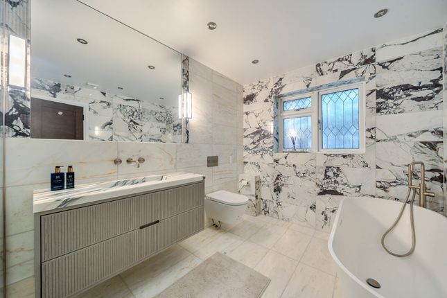 Occupying a prime position on the highly sought-after St Leonards Hill in Windsor, this impressive detached residence offers approximately 4,065 sq ft of beautifully appointed living space, thoughtfully designed to meet the needs of modern family life. At the heart of the home is a stunning open-plan kitchen, breakfast, dining, and family room a beautifully crafted space finished with elegant Calacatta Viola marble. This area seamlessly blends style with functionality, creating a warm and welcoming environment ideal for both everyday living and entertaining. The home also boasts a luxurious double reception room, perfect for relaxed gatherings or formal occasions, alongside a separate study that provides a quiet and inspiring space for home working. Accommodation includes five generously sized bedrooms and four recently refurbished bathrooms, all exquisitely finished with marble detailing and high-spec Lusso stone vanity units, offering a refined sense of comfort and sophistication. Outside, the property benefits from a gated driveway and a detached triple garage, providing secure parking and ample storage. The large, secluded rear garden and patio area offer a peaceful and private setting for alfresco dining and relaxation. To check broadband and mobile phone coverage please visit Ofcom here
